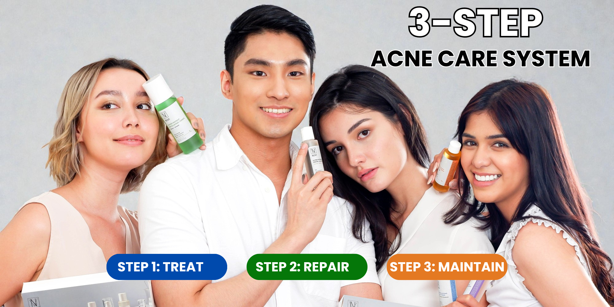 Your skin changes. Your routine should adapt. NUVI treats acne through clear steps that work together.