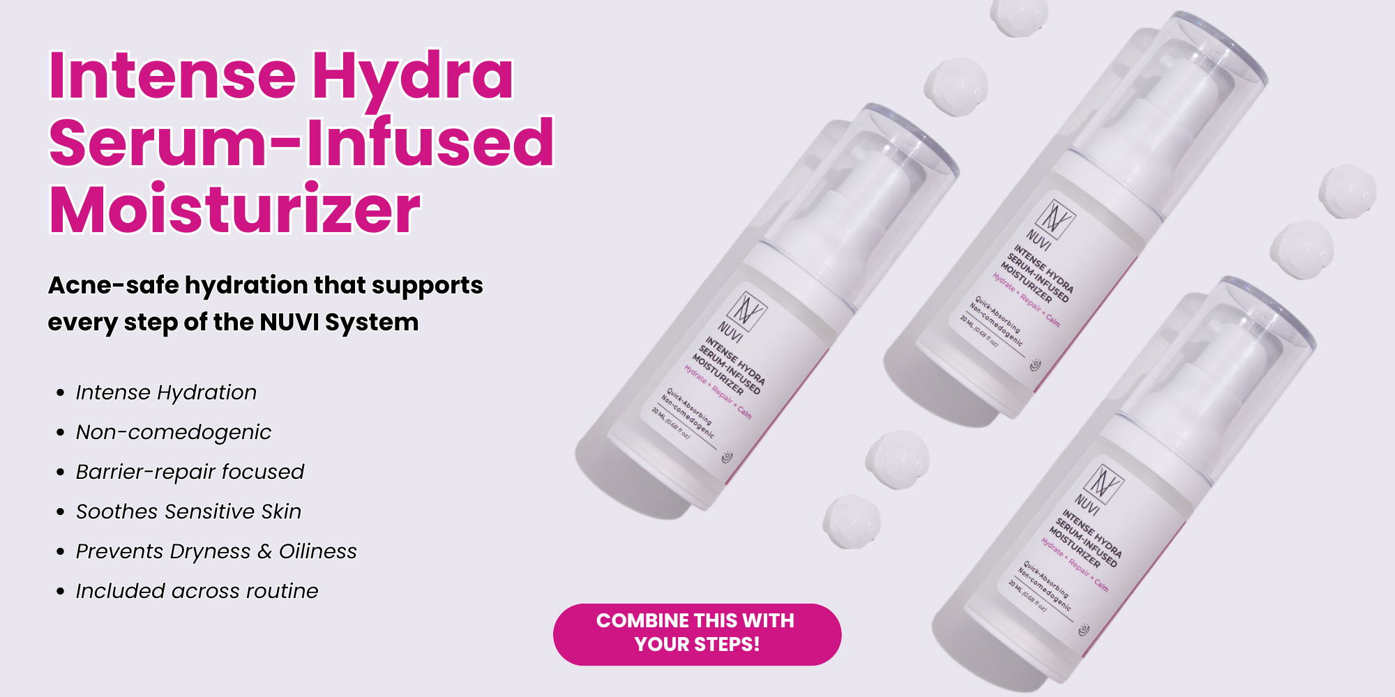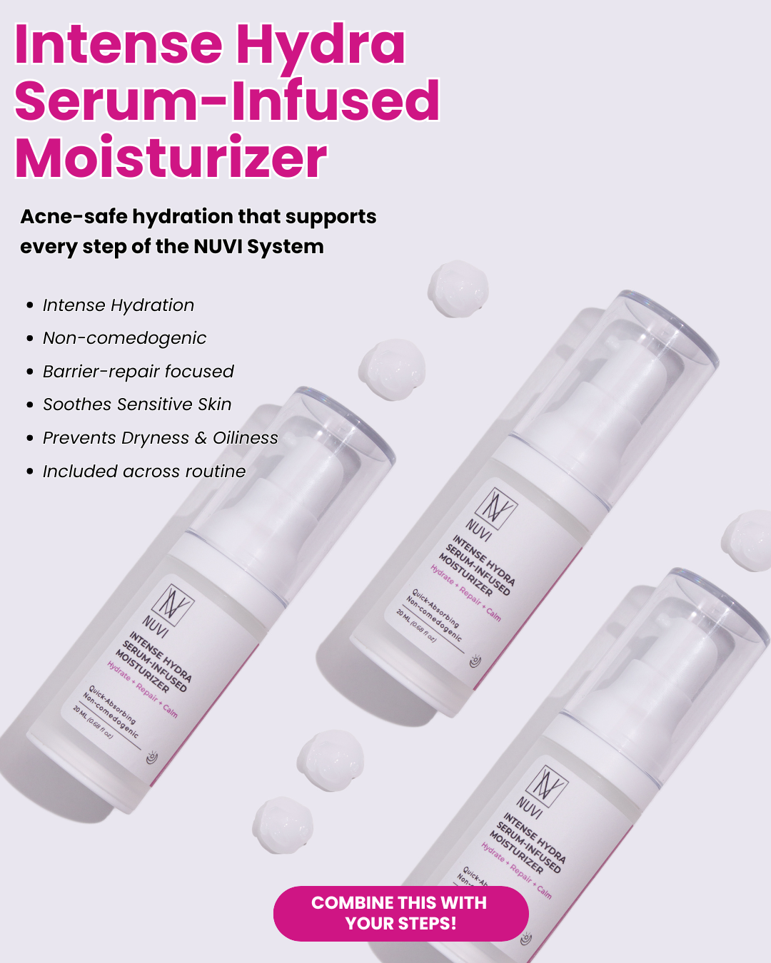NUVI products are formulated to work together as a system. Mixing products may disrupt results, especially for sensitive skin.